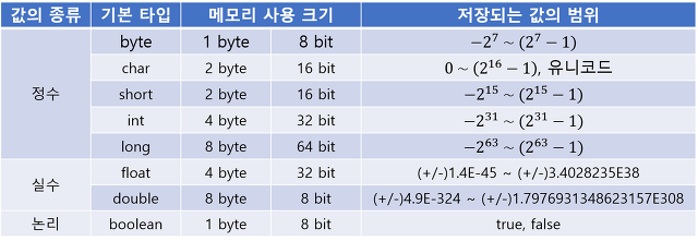 기본 자료형의 종류와 크기는 반드시 외워야 한다.