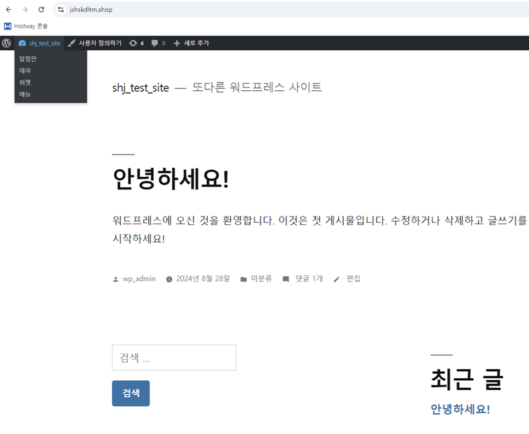 아래와 같이 워드프레스 웹 사이트가 뜰 것이다.